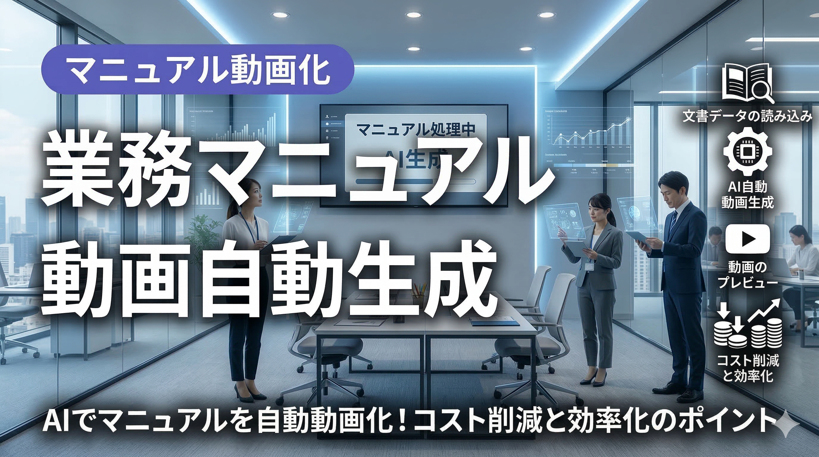 業務内容の頻繁な変更により、マニュアル動画の更新作業が追いつかない…そんなL&D部門の悩みを解決する「自動生成ツール」の活用法を解説します。定期的な変更に追従し、常に最新の学習環境を維持するための動画運用戦略をご紹介します。